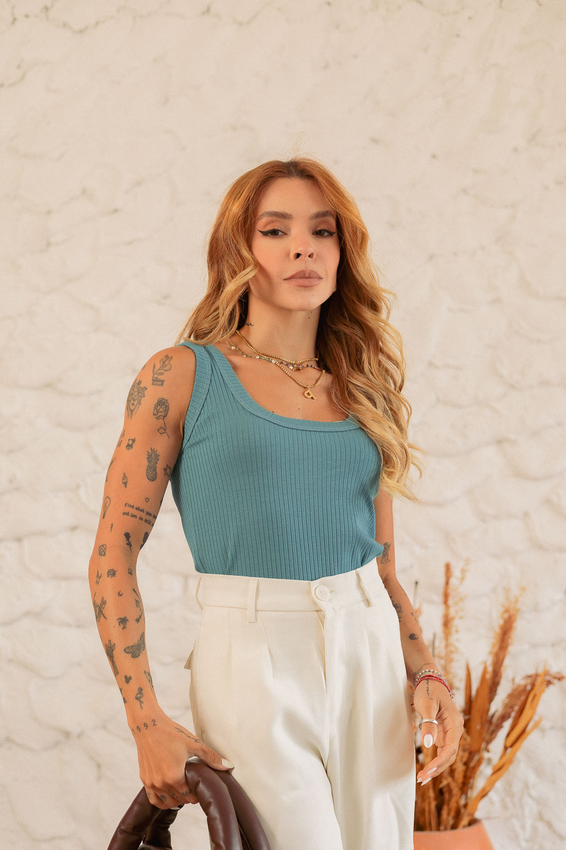 Regata canelada SOHO com modelagem tradicional de gola quadrada