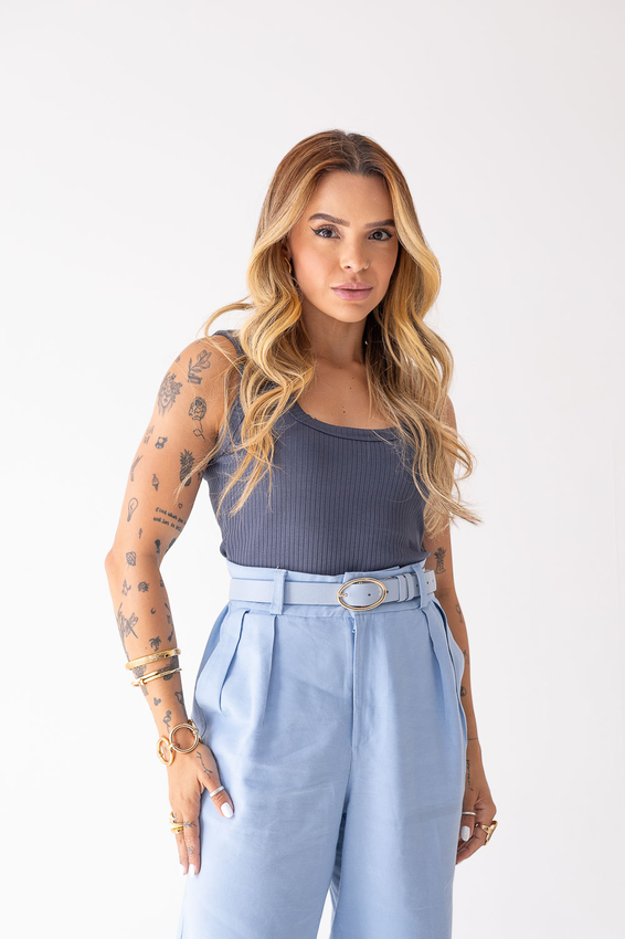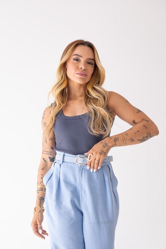Regata canelada SOHO com modelagem tradicional de gola quadrada
