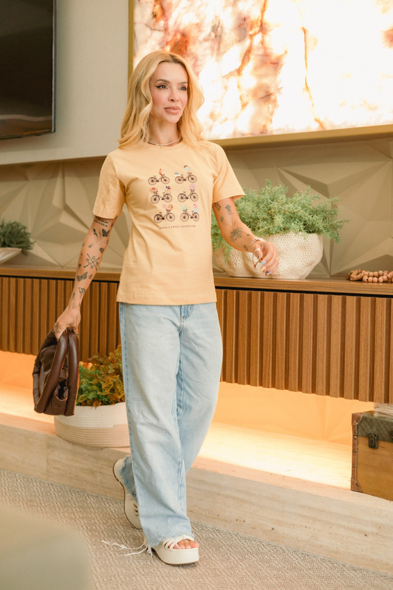 Tshirt com modelagem tradicional de camiseta gola''O'' com Gola em Ribana Canelada e costura ombro a ombro.