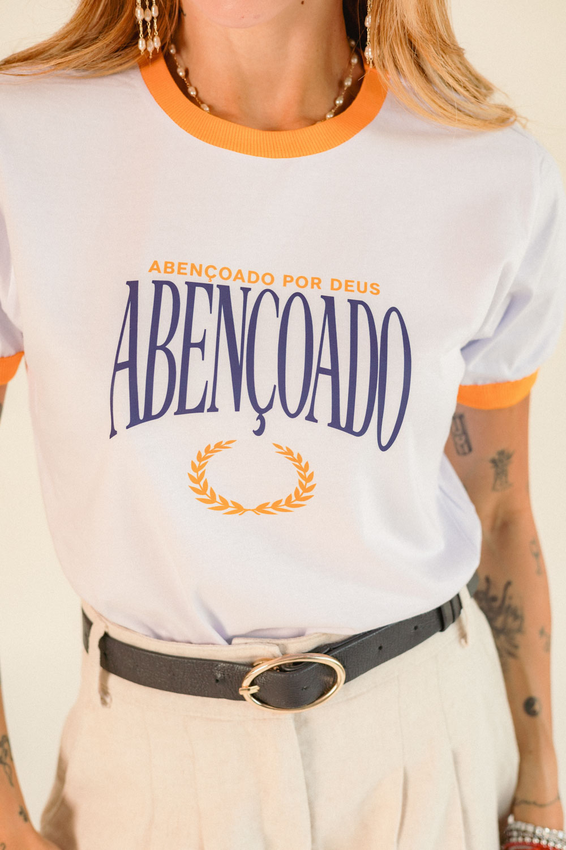 Tshirt com modelagem tradicional de camiseta gola''O'' com ribana, punhos e gola coloridos e costura ombro a ombro.