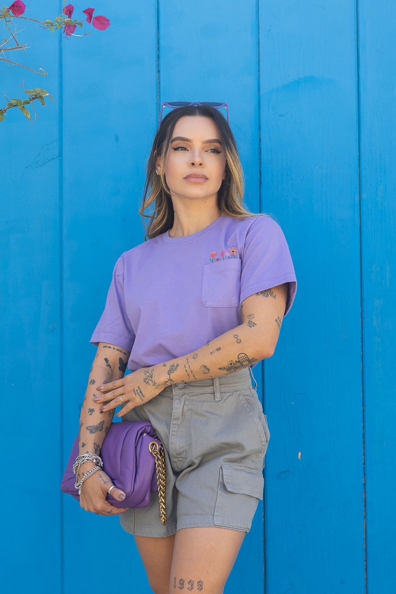 Tshirt com modelagem tradicional de camiseta gola''O'' com bolso lateral, Gola em Ribana Canelada e costura ombro a ombro.