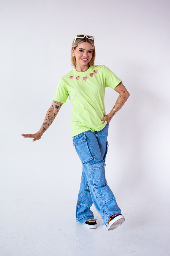Tshirt com modelagem tradicional de camiseta gola''O'' com ribana e costura ombro a ombro.