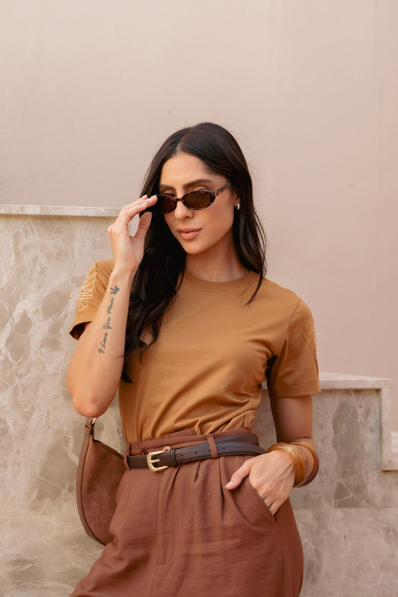 Tshirt com modelagem tradicional de camiseta gola''O'' com ribana e costura ombro a ombro.