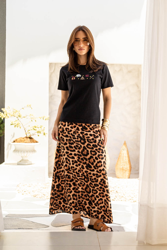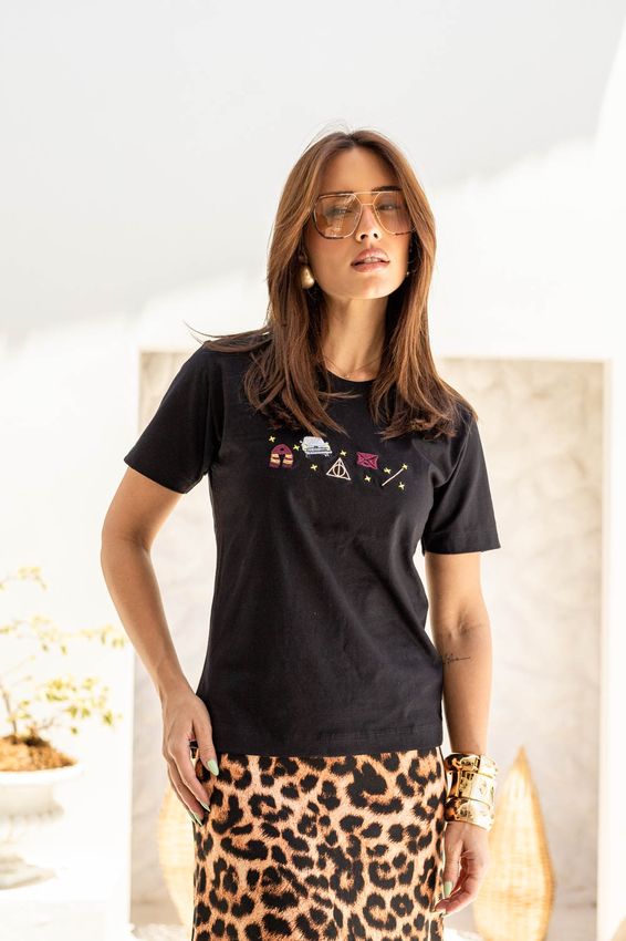 Tshirt com modelagem tradicional de camiseta gola''O'' com ribana e costura ombro a ombro.