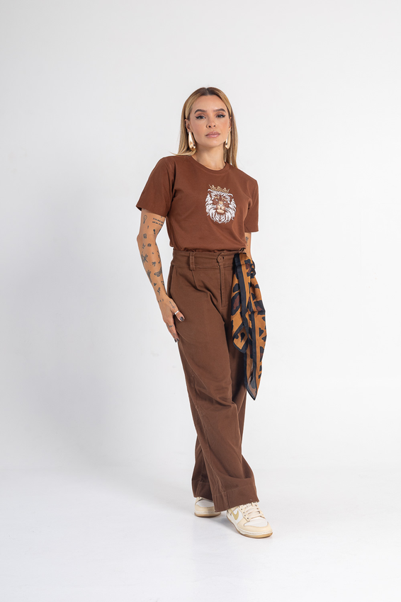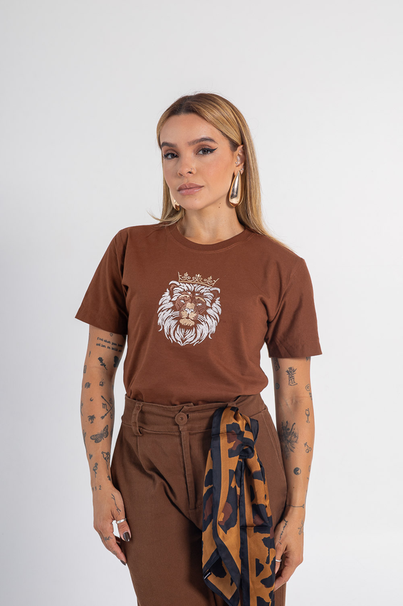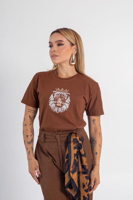 Tshirt com modelagem tradicional de camiseta gola''O'' em Riabana Canelada e costura ombro a ombro.