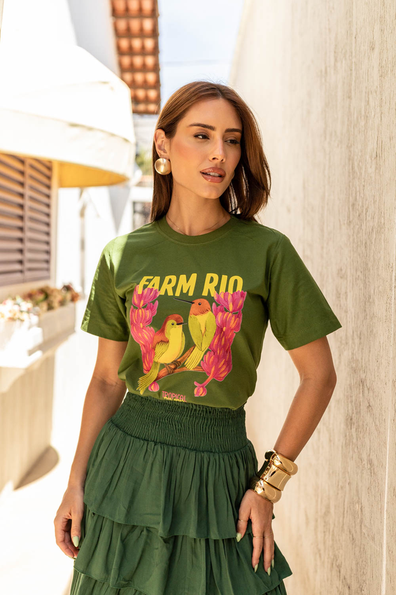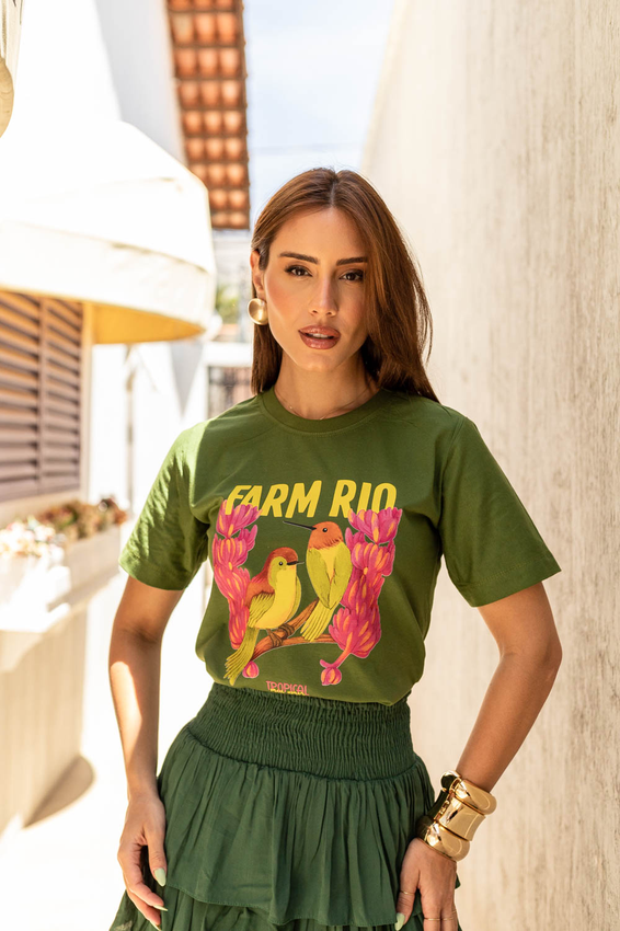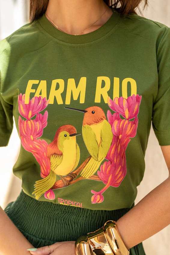 Tshirt Farm Rio Pássaros Bananas Rosa