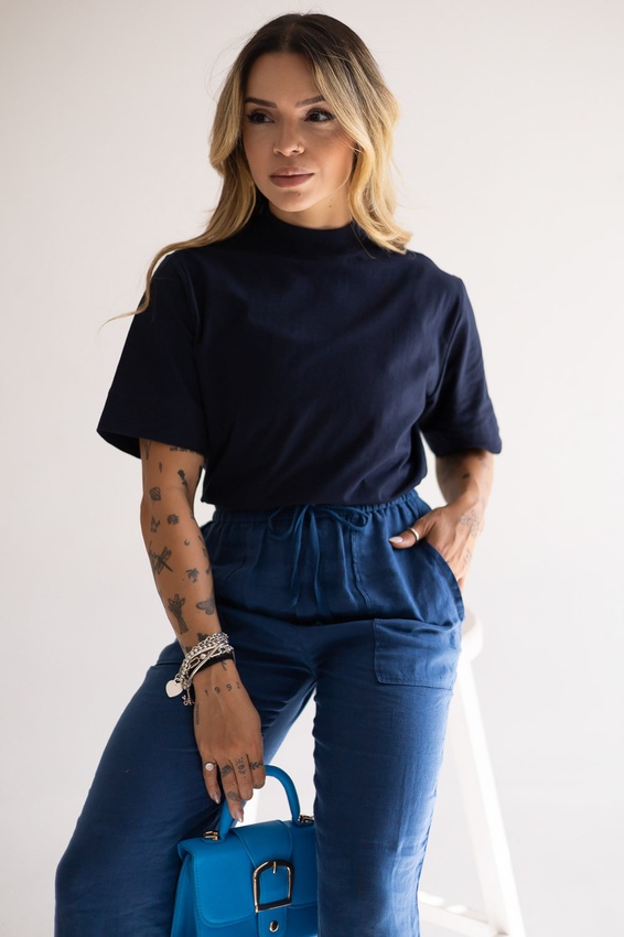 Tshirt com modelagem tradicional de camiseta gola''O'' com ribana e costura ombro a ombro.