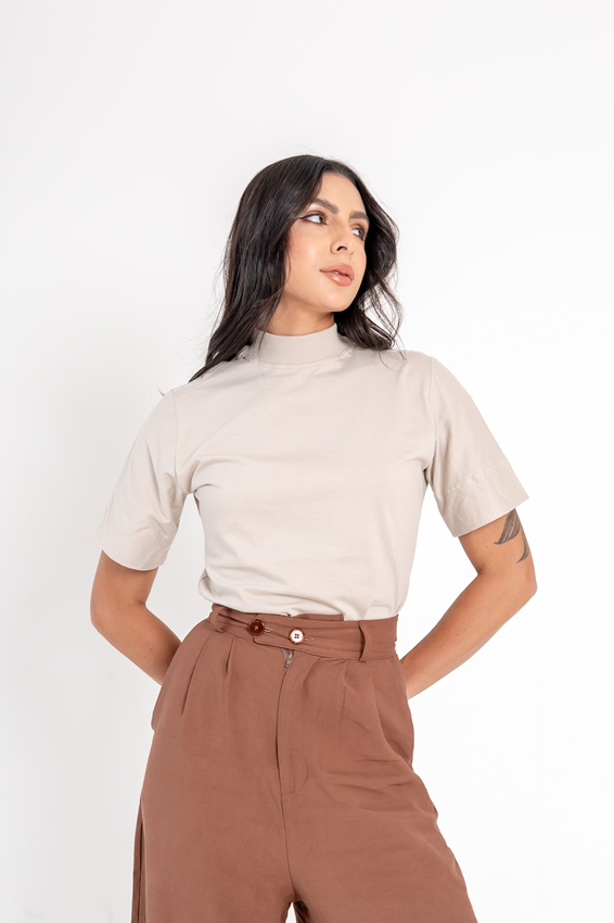 Tshirt com modelagem tradicional de camiseta gola''O'' com ribana e costura ombro a ombro.