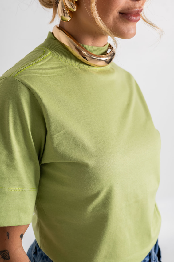 Tshirt com modelagem tradicional de camiseta gola''O'' com ribana e costura ombro a ombro.