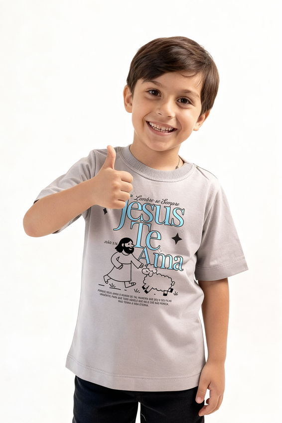 Tshirt Infantil Com modelagem tradicional de camiseta gola''O''e costura ombro a ombro.