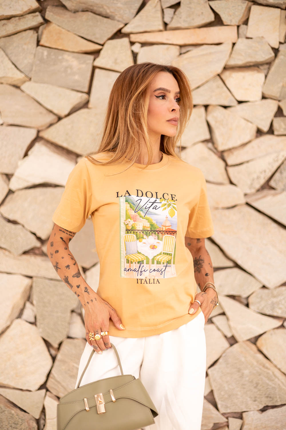 Tshirt com modelagem tradicional de camiseta gola''O'' com Gola em Ribana Canelada e costura ombro a ombro.
