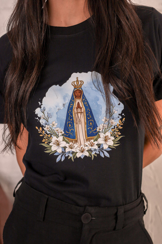 Tshirt Nossa Senhora Aparecida Flores Brancas