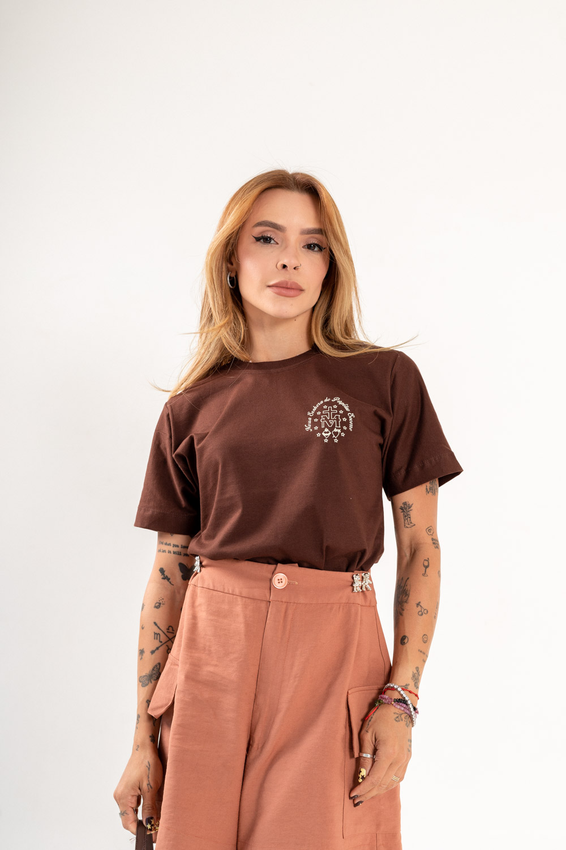 Tshirt com modelagem tradicional de camiseta gola''O'' com Gola em Ribana Canelada e costura ombro a ombro.