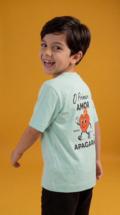 Tshirt Infantil Com modelagem tradicional de camiseta gola''O''e costura ombro a ombro.