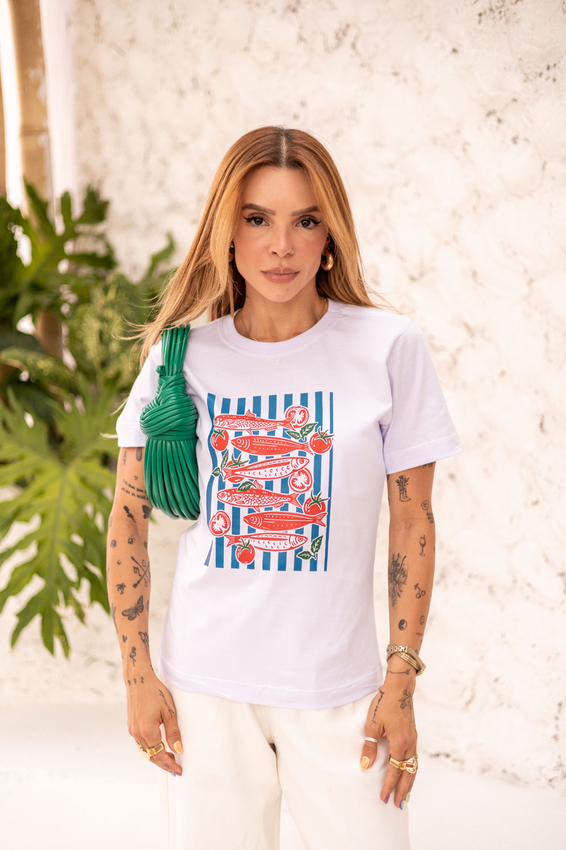 Tshirt com modelagem tradicional de camiseta gola''O'' com Gola em Ribana Canelada e costura ombro a ombro.