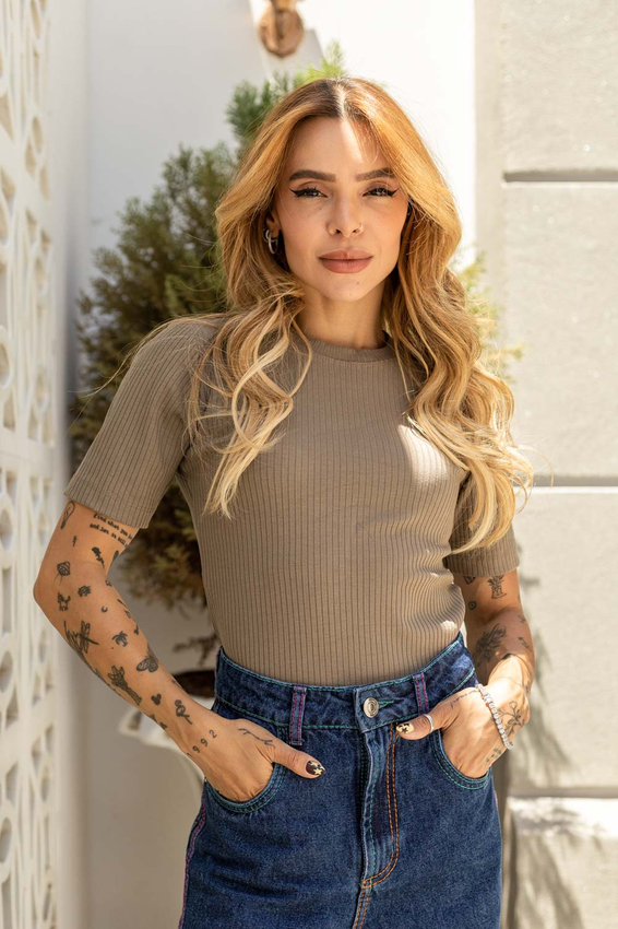 Tshirt canelada SOHO com modelagem tradicional de gola'' O''