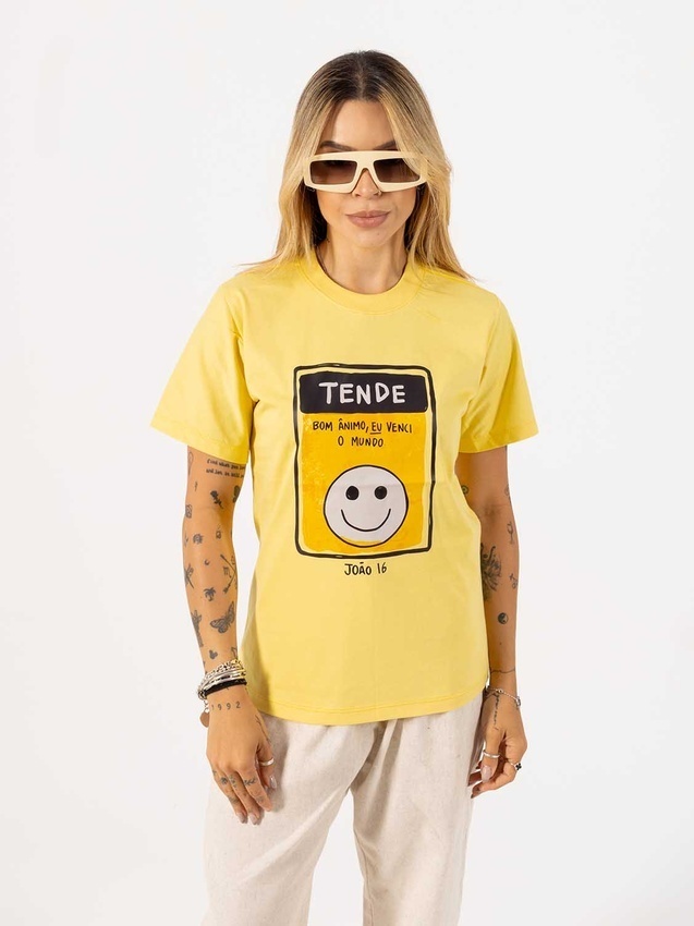 Tshirt com modelagem tradicional de camiseta gola''O'' com ribana e costura ombro a ombro.