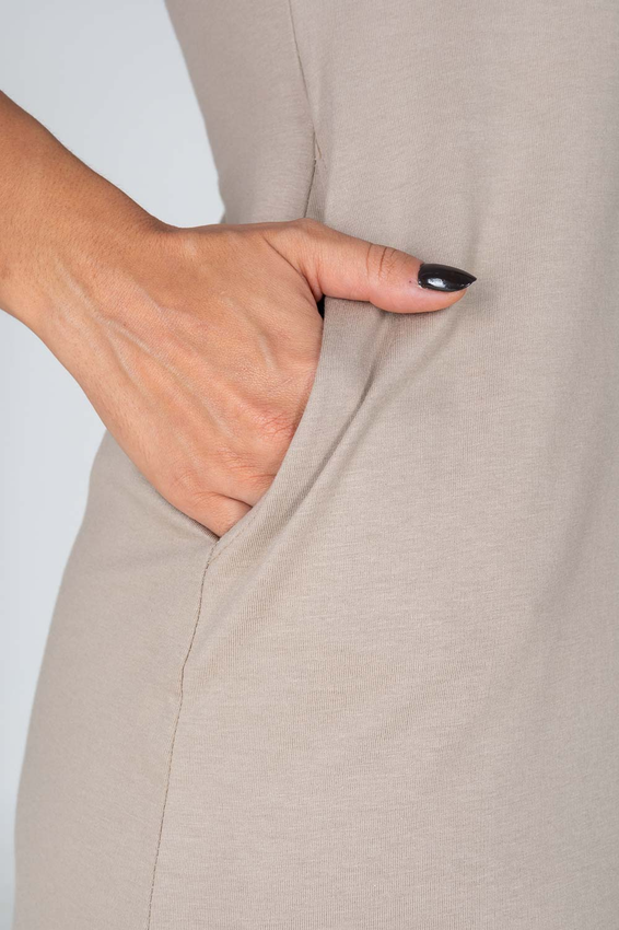 Vestido Midi de Mangas com modelagem tradicional de gola''O'' com ribana e costura ombro a ombro.