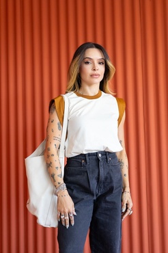 Muscle Tee Bicolor Bege Mangas Conhaque