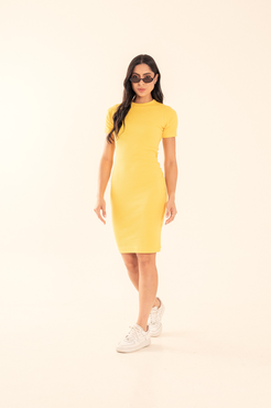 Vestido Tubo Com Mangas Canelado Flash Yellow