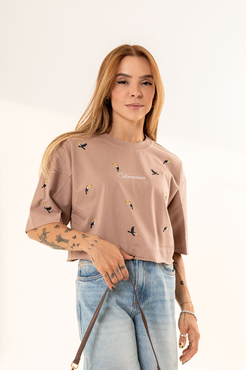 Tshirt Passarinho Flores Farm Rio Aplicação